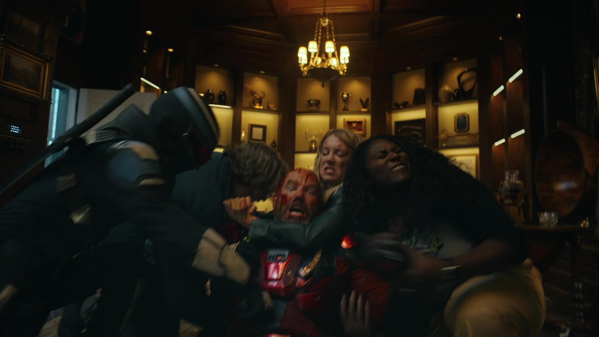 In 2025, an alternate Chris Smith accidentally entered the mansion through the Quantum Unfolding Chamber, where he was greeted by Auggie. Eventually, the alternate Chris visited Earth-2 again, where he reunited with his brother, who asked if he could be in Blüdhaven. Auggie welcomed him into the mansion, believing him to be his son, and they chatted. Chris Smith soon left Blüdhaven and confronted the alternate Chris at the mansion, believing him to be a shapeshifter. The alternate Chris Smith quickly returned to the chamber, where he pursued him, only to be accidentally killed.[5] Later, Auggie and Keith discovered Chris's disappearance after finding a trail of blood leading from a bookshelf in the mansion.[4]