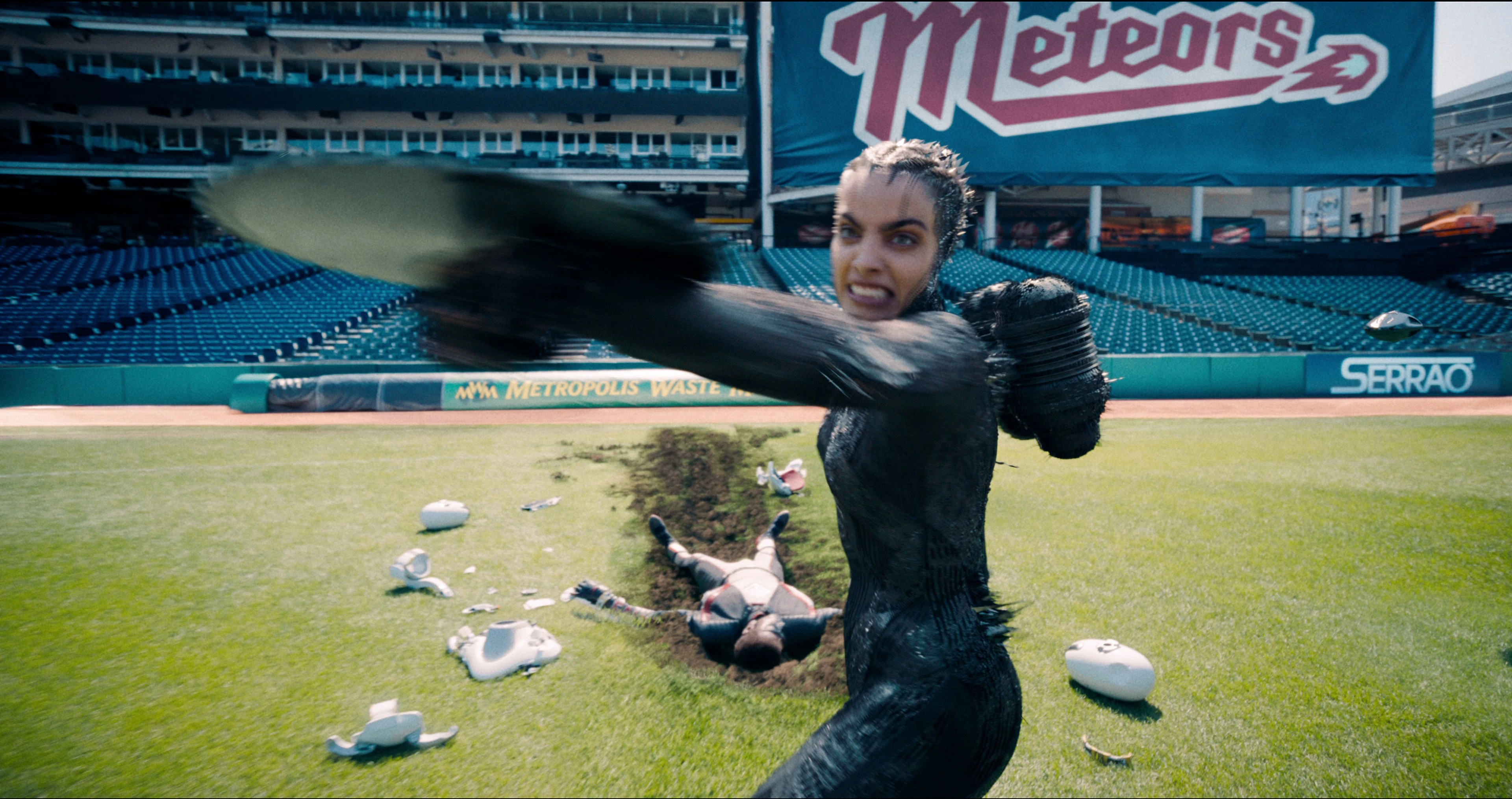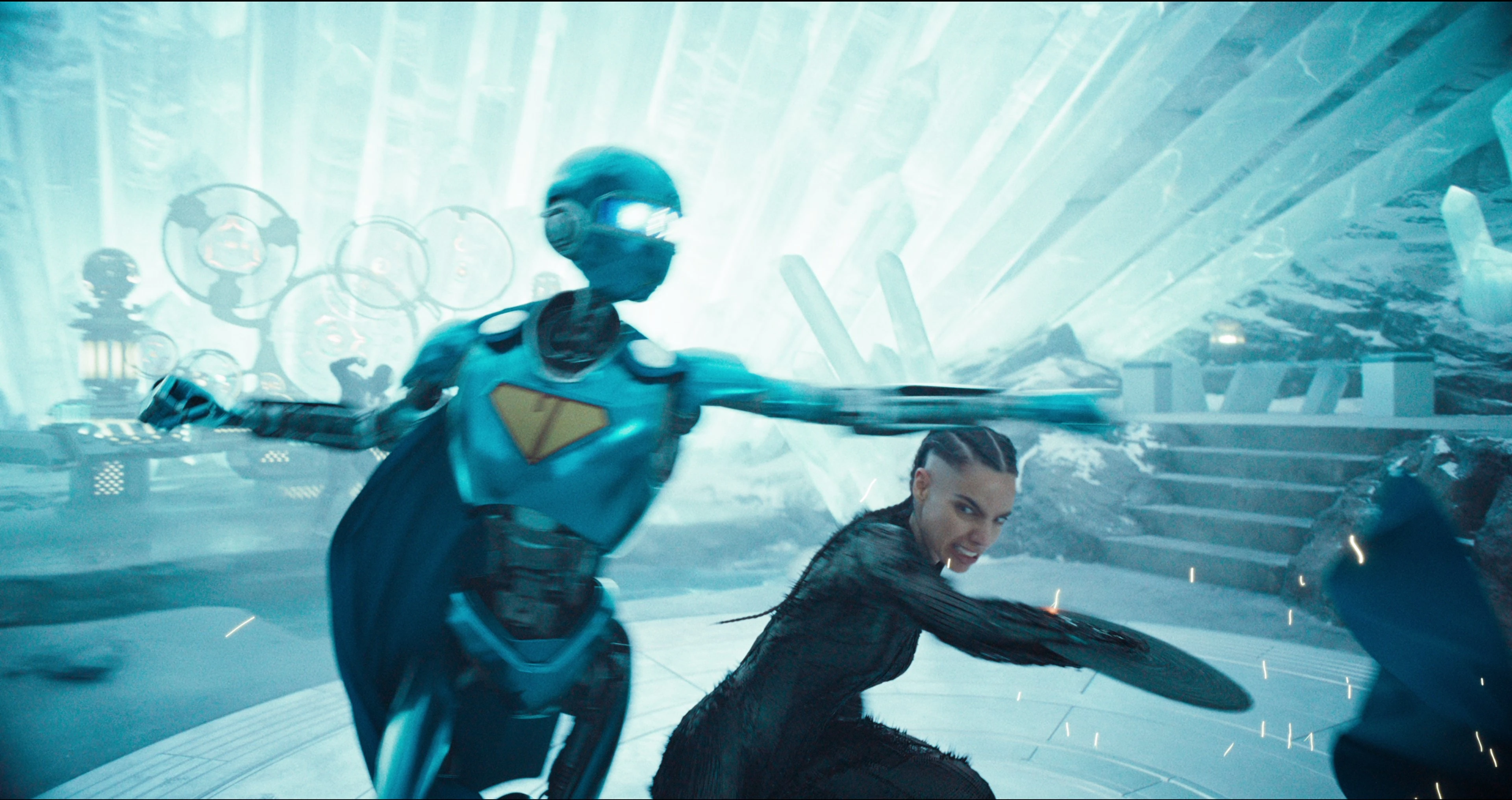 With the dimensional rift tearing Metropolis in half, Superman and Mister Terrific teamed up to assist in the evacuation and avert disaster. Upon the heroes' arrival, Engineer and Ultraman flew toward them, with Engineer attacking Terrific against the LordTech Field and knocking him unconscious after destroying his hover chair. When Ultraman ambushed Superman, Engineer quickly deployed and threw her blades before slamming him to the ground, but Superman used his heat vision to attack her claws and face, restraining Engineer. He attempted to reason with both her and Ultraman about abandoning Lex Luthor, but his speech was cut short when Ultraman struck him, forcing Superman to defend himself while Engineer was trapped in his arm by her nanites.