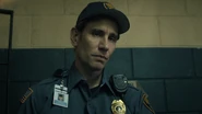 After surrendering to A.R.G.U.S. and handing over the Quantum Unfolding Chamber Access Device to Rick Flag, Sr.,[5] Peacemaker was detained and arrested at Evergreen Corrections Center, leaving Eagly in the care of John Economos. In his cell, Smith was visited by security guard Durwitz, who brought him a visitor list, which Smith refused to see. Later, Durwitz informed Smith that he had been released on bail, confusing him. Smith asked who had paid his bail, and Durwitz revealed it was Leota Adebayo. Smith tried to refuse to leave, but Durwitz told him it didn't work that way and released him anyway.[6]