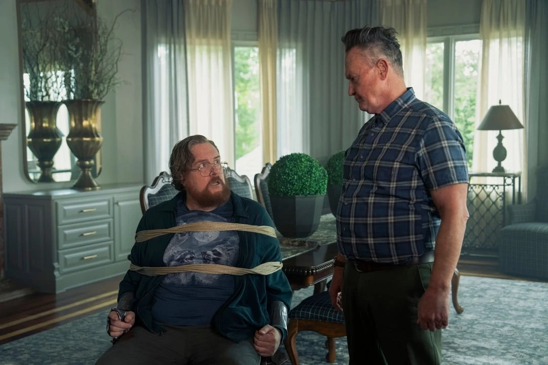 Outside, Adebayo, Judomaster, and the two Vigilantes observe the mansion. Adebayo vetoes their plans to kill the cops and storm the house, suggesting they sneak in instead. Inside, Auggie instructs Chris and his group to leave once everyone has gathered, but Keith refuses, demanding retribution for his brother. Auggie warns that revenge will not bring him back. Harcourt, sensing Auggie's decency, surprising for a Nazi she assumes. But Auggie replies that the heroic actions he carries out in a Nazi-run world does not align with its ideologies. Before he can elaborate, Vigilante bursts in and kills him on sight.