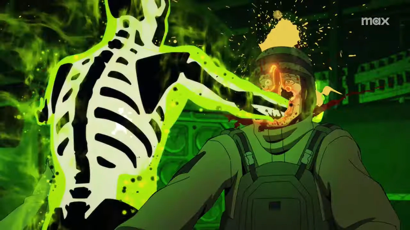 Alex Sartorius is transformed into a radioactive skeleton